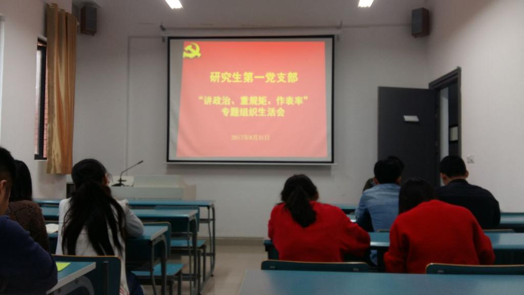 为进一步推进“讲政治、重规矩、作表率”学习教育,2017年8月31日下午,色情av影片 研究生第一党支部组织了支部全体党员召开“讲政治、重规矩、作表率”专题警示教育组织生活会,会议由支部书记贾伟主持。
